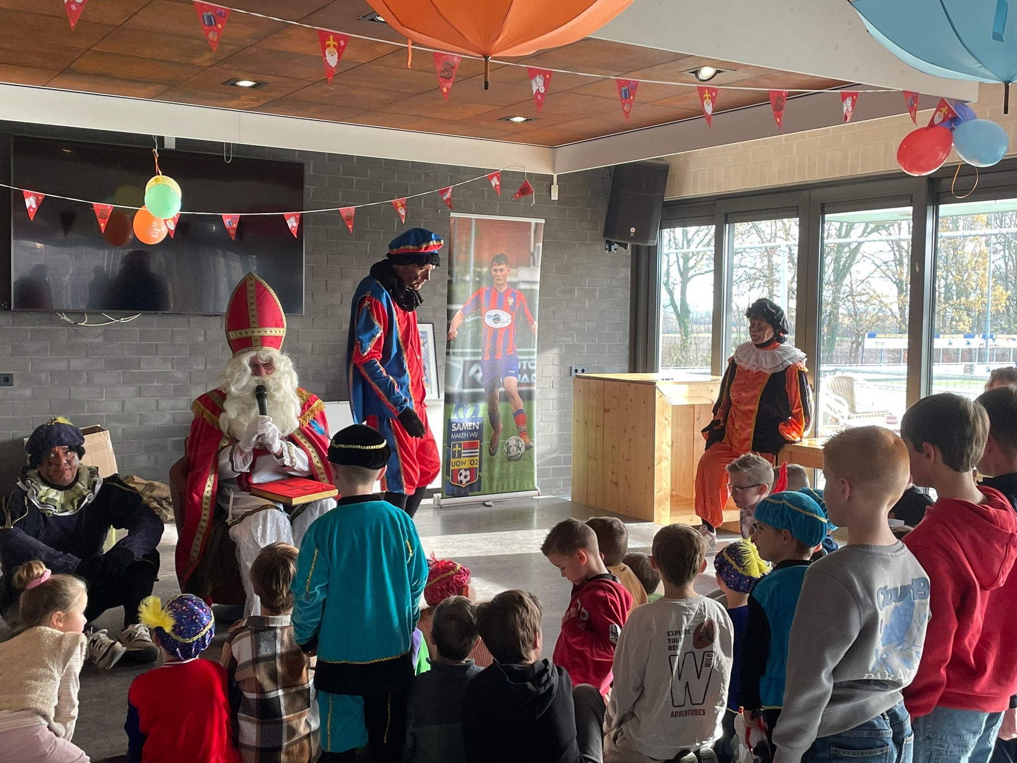Vorige week zaterdag (22 november) was het een feestelijke dag bij onze voetbalvereniging, want niemand minder dan Sinterklaas kwam langs! En hij was niet alleen⦠vier vrolijke Pieten zorgden voor extra gezelligheid.